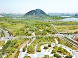 华山历史文化湿地公园西侧的“鹊华视廊”迎来建设后的排名前列春天,俯瞰整个视廊,绿意盎然。