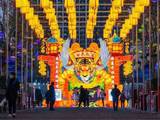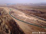元旦假日,航拍正在施工的济南起步区黄河公园示范段。公园的草地和曲线型道路构成优美的图案,在这里甚至堆起了一个长条形土山 。 许多机械和工人在忙碌施工 。