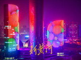 12月28日,在西客站片区威海路南侧的山东高速广场,“熄灯”一年多的三座塔楼重新亮灯,安装在建筑外立面幕墙上的新LED装饰灯全部点亮,上万根灯管合体后织就出变换万千的绚丽光影。 三座塔楼还与齐州路两侧的齐鲁之门项目8座高楼灯光联动,进行首次灯光秀组合调试,11座高层建筑的外墙同时展现相通的灯效和动态