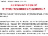 12月20日晚间,禾迈股份发布公告称,在保证不影响募集资金投资项目实施、募集资金安全的前提下,拟使用较高不超过人民币45亿元的暂时闲置募集资金进行现金管理。前脚刚上市,后脚就拿超募资金去买理财!A股市场最贵新股禾迈股份又一次出乎市场意料。 据悉,禾迈股份此次现金管理方式是购买安全性高、流动性好、有保