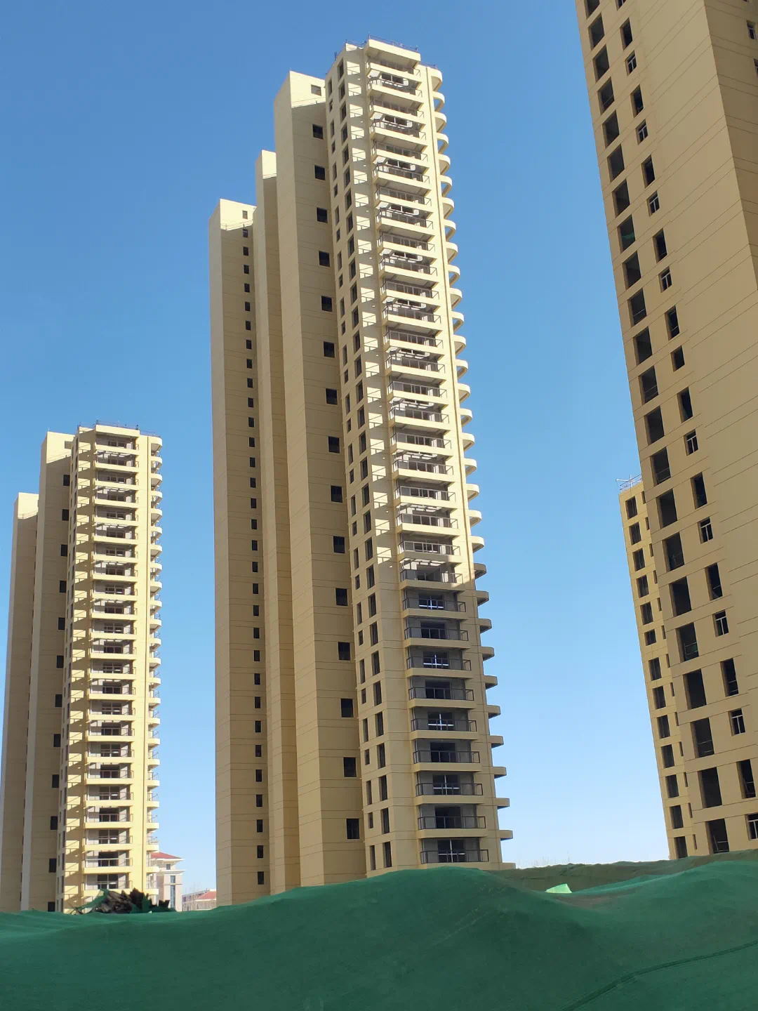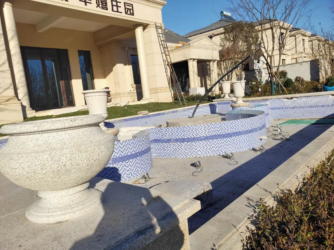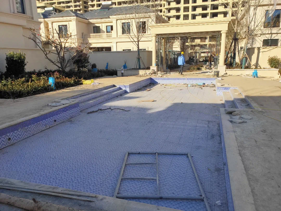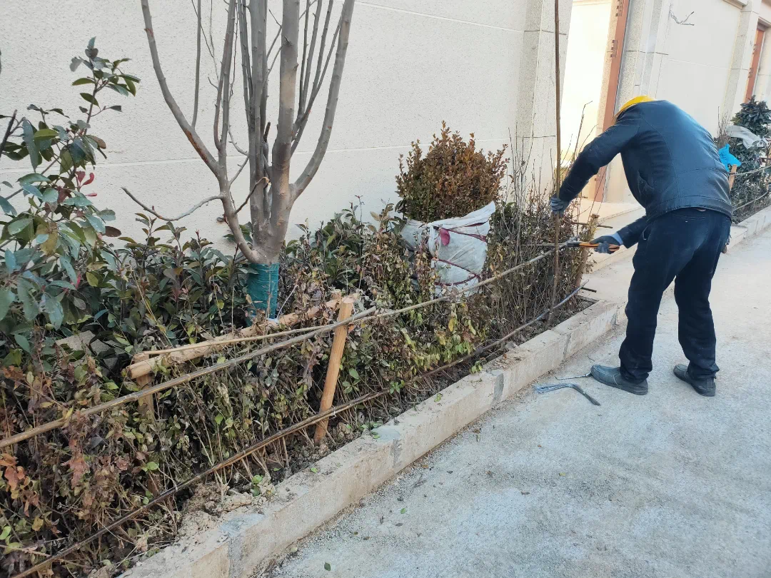 排屋区绿化施工完成、绿化防冻保护措施施工中